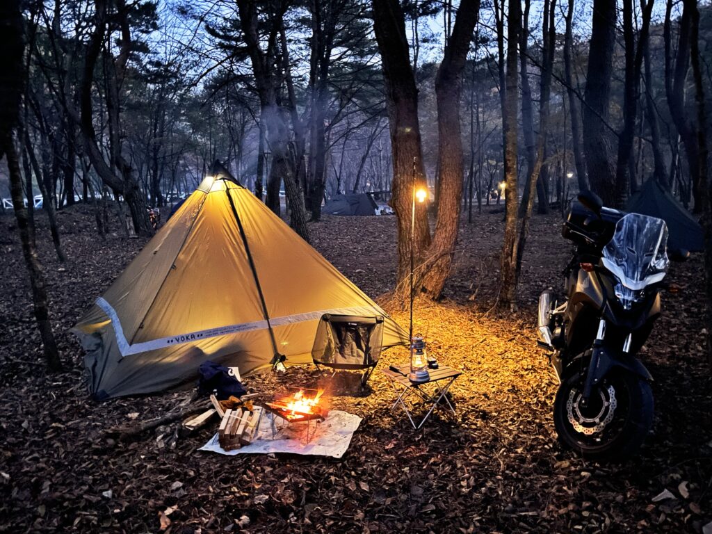 • バイクツーリングキャンプをするソロキャンパー