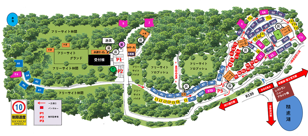 キャンプあかいけ(山梨県南都留郡富士河口湖町)|樹海の涼風と多彩なサイト